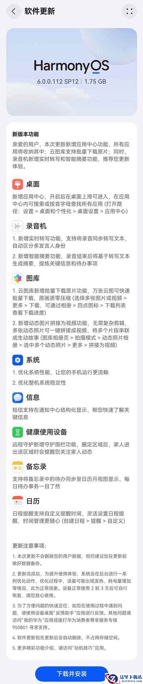 附华为鸿蒙 HarmonyOS 6.0.0.112 SP12 版本更新内容如下: