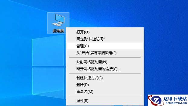 1、右键点击此电脑,在打开的菜单项中,选择管理;
