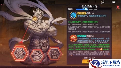 格斗家以公会为单位利用副本BOSS掉落奖励建造公会圣像,圣像成功建造后可对参与影罗巢穴的玩家进行具体场景的技能强化。