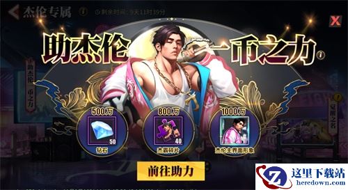 格斗家点击【前往助力】,即可参与活动为杰伦助力。待助力人数增多,到达500万、800万、1000万三个阶段,就可获得钻石、杰霸碎片以及杰伦主界面形象的奖励。