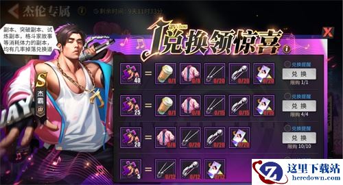 活动期间通关各种副本都可以掉落活动专属道具,收集齐相应的专属道具可以兑换杰霸碎片,共有5、20、25和40四种档次的奖励,每一档的兑换次数不同,
