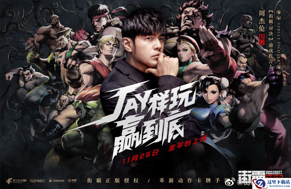 今日(11月23日),《街霸:对决》游戏代言人周杰伦正式官宣!在这街霸的格斗场上周董的绰号是“杰霸”,官方的全平台不删档倒计时海报中,就出现了周董黑色背心手持双截棍的艺术画。以周杰伦为原型设计的全新格斗家“杰霸”,也将同步上线游戏内。