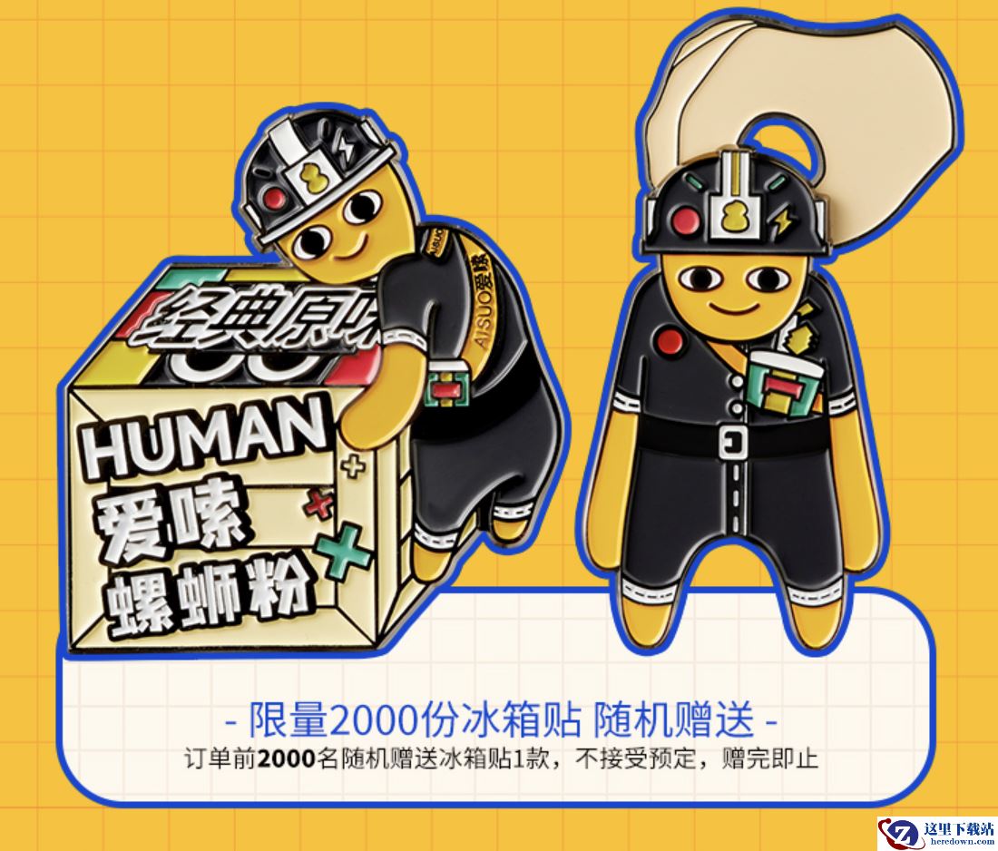 除了能嗦粉嗦到饱之外,礼盒内还包含惊喜大礼。每套礼盒都能开出《人类跌落梦境》联动皮肤【粉圈顶流】,前2000名购买联动限定款爱嗦冲泡螺蛳粉将获得该皮肤主题冰箱贴,让大家在现实世界里,也能体验揪Bob脑壳的乐趣。