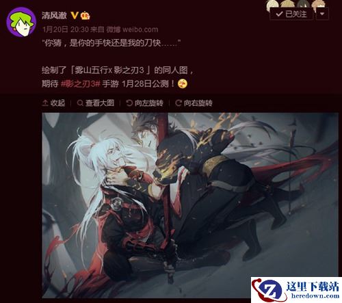 知名画师“清风澈”甚至还在双方暗送秋波之际,在微博上抛出一张《影之刃3》男主“魂”与《雾山五行》男主“闻人翊悬”的同人图。虽然目前双方都没有公布具体的联动内容,但吃瓜群众们早就已经脑洞大开,这还真是说者无心听者有意,看来这对CP已经内定。