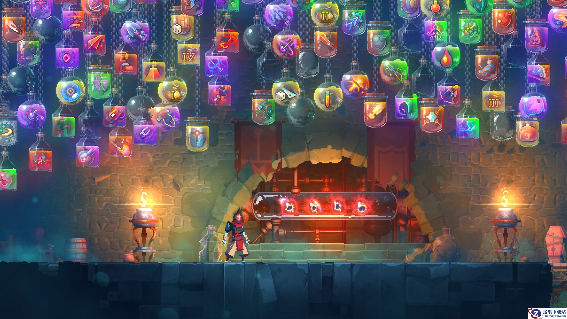 《死亡细胞》讲述了一位失败的炼金炼金师化身为一群有意识的细胞,附着在一位死去战士的身体上,探索变化多端的神秘世界。主人公身上发生了什么?这个世界发生了什么?游戏没有给出准确的说明,但在场景中随处都埋下了蛛丝马迹。在令人肾上腺素爆表的战斗之余,找一找剧情彩蛋也是十分有趣的。