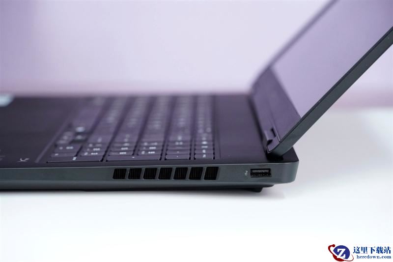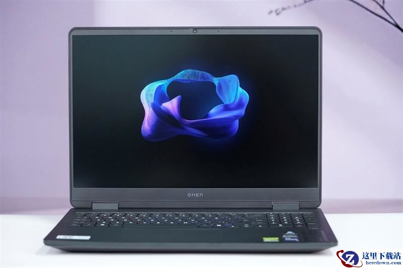 B面屏幕部分则搭载了一块16英寸电竞屏,分辨率为2.5K(2560×1600),支持60~240Hz可变分辨率,最高亮度达500nits,即便在强光下也能看清画面细节,16:10的黄金比例以及高达89%的屏占比显著拓宽视野,给予玩家更具沉浸的视觉体验。上方布置有摄像头和阵列式麦克风,屏幕下方印有OMEN字样。