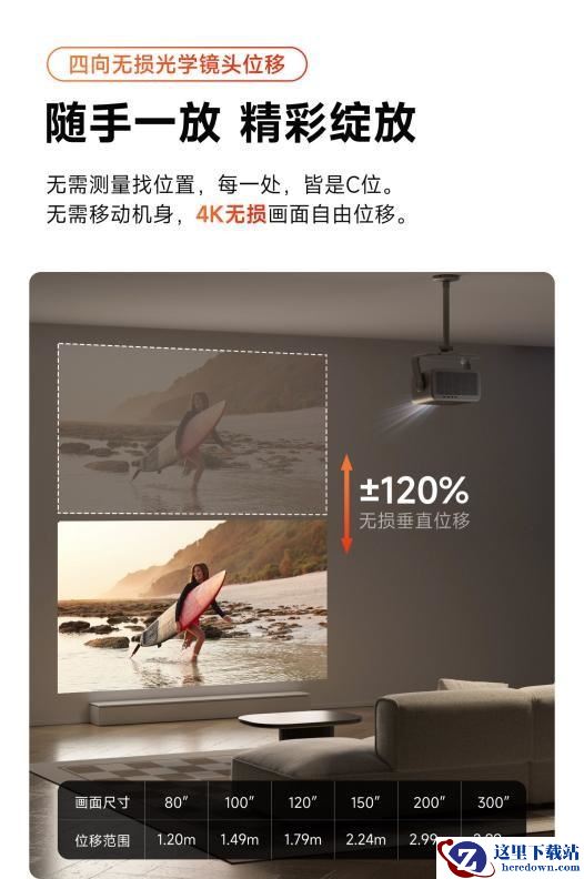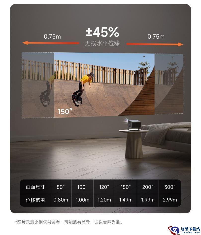 此外,当贝X7Max还增加了四向无损光学镜头位移,支持±120%垂直位移和±45%水平位移,无需移动机身,就能轻松调整合适位置的方正、清晰且无任何画质损失的画面。在实际应用中,客厅吊装当贝X7Max,可以通过镜头位移下移至合适位置,卧室床头柜摆放当贝X7Max,可以不必侧投损坏画质,可以先正投,然后通过镜头位移平移至合适位置。这些专业级的光学特性,让当贝X7 Max在安装灵活性上远超X5S Max,特别适合房间布局固定、又不愿妥协画质的用户。