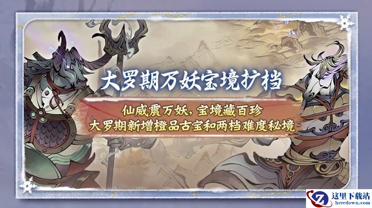 大罗期新增两档难度万妖宝境秘境,玩家前往挑战秘境首领,有机会获取大罗期橙品新古宝。
