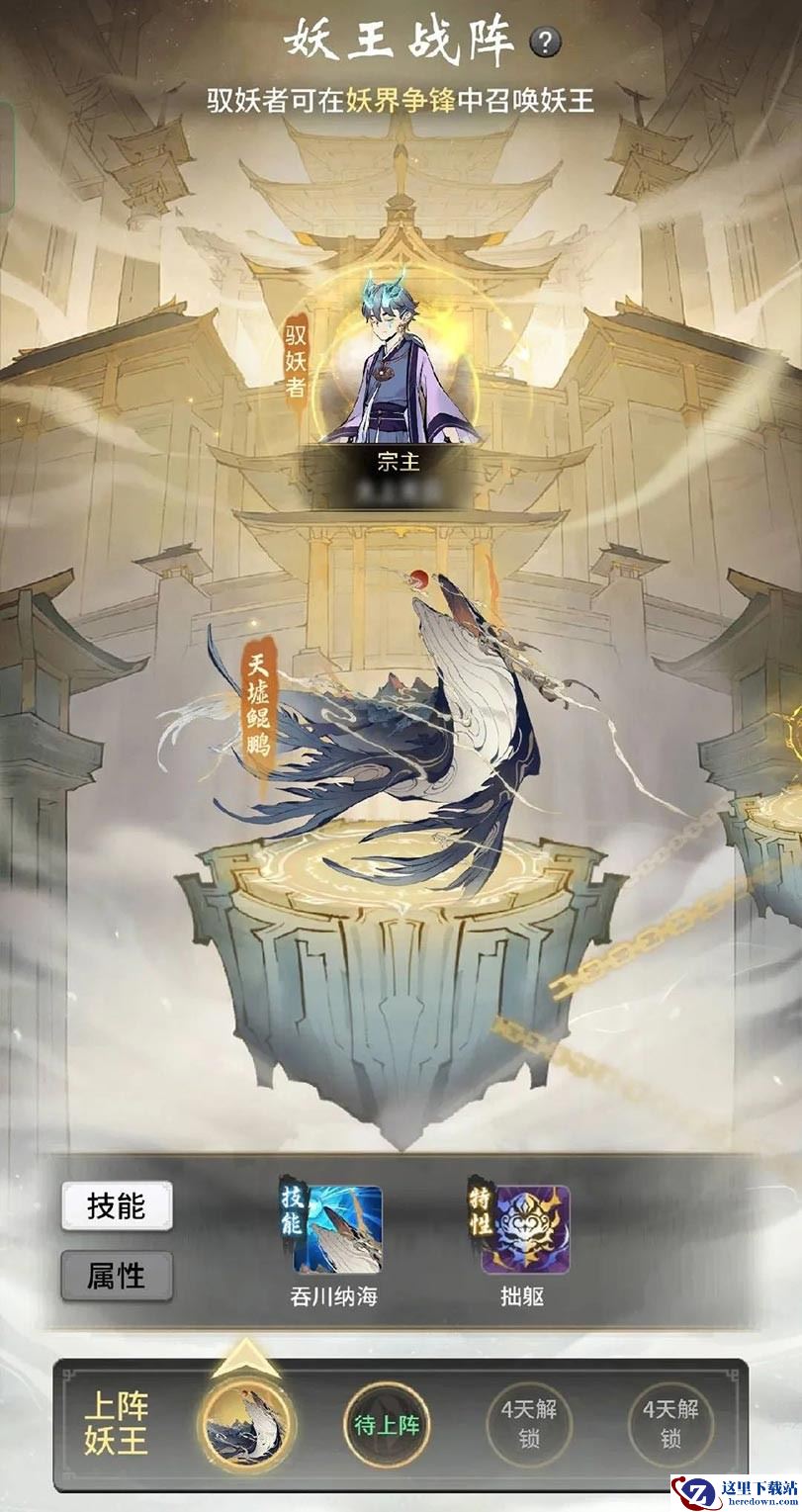 上面封印的妖王,会作为宗门战阵,宗主安排驭妖者和上阵妖王后,驭妖者便可在争锋战场中召唤出妖王,发挥对应技能,如鲲鹏的“吞川纳海”可提高积分获取等。