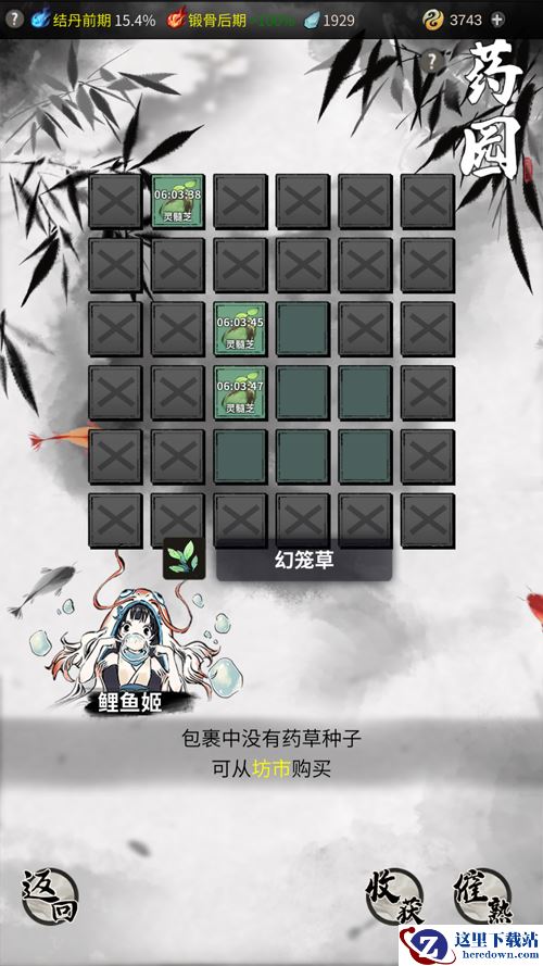 我学着药童的样子将手上的灵髓芝和幻笼草泼撒在几块地里,并用土埋好。药童拍了拍手里的土尘,开心的说道:“幻笼草的生长期短,约莫过几个时辰就可以收获咯!别小看这一颗颗灵珠,它们有的不仅够作为炼器辅材,增加你炼制极品装备的概率;有的也能当做一些稀有丹药的材料......”药童还在不停地说,而我却只记得“几个时辰”这四个大字:“啊!需要这么久?有没有速成肥料呀?!”