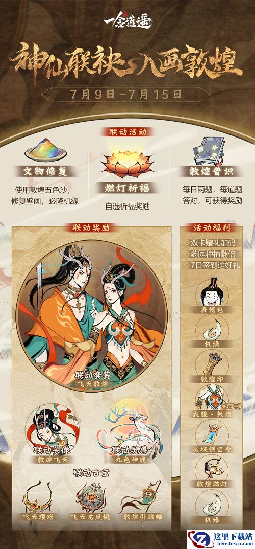 今天敦煌联动活动正式上线,如果你也想成为身着敦煌仙裳,身边有九色神鹿,手持敦煌古宝的仙人,可得记得参加敦煌限时专题活动“文物修复”、“敦煌普识”以及“燃灯祈福”,不仅可以获得丰富的游戏奖励,还能从中了解敦煌文化。燃起文化传承之火。