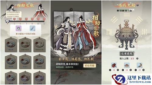 此次丹方活动共分为三部分:首先,仙友可通过“秘境挂机”和"每日福缘"获得三种基础药材;其次,通过三种药材的不同配比,仙友可以在炼药大殿尝试研制不同多达17种不同种类的药笺,品质越高的药笺所需药材越多,对应的奖励也越丰厚;最后,每种药笺有且仅有一个正确的药材配比,各位仙友可以通过自行尝试或者与其他仙友交流,获得正确配比。