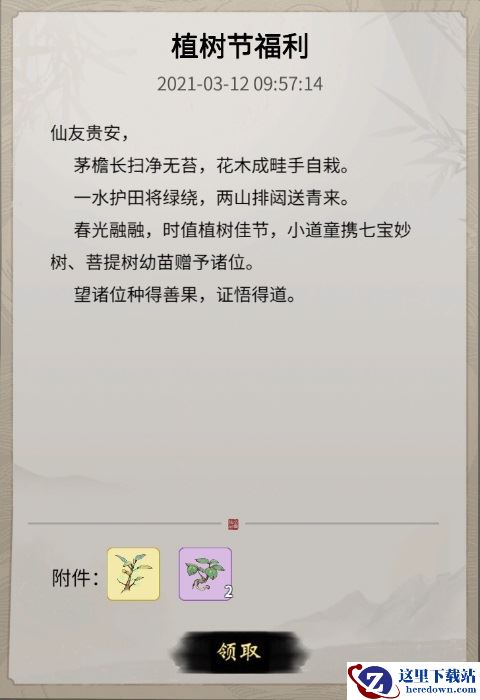 恰逢植树节,《一念逍遥》也将送出植树节专属福利——七宝妙树和菩提树的幼苗!各位仙友栽种这两种宝树,即可种得善果,收获机缘和感悟!