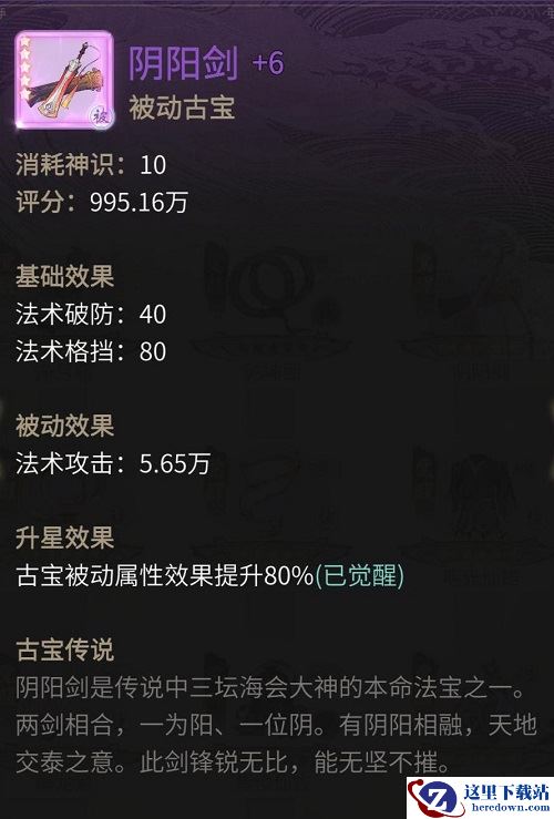 在《一念逍遥》中,阴阳剑也是非常强力的珍宝,阴、阳两剑相合有天地交泰之意,此剑锋利无比、无坚不摧,可提升法术破防和法术格挡,还能大大提升法术攻击,是为修仙者干架切磋必备之物。