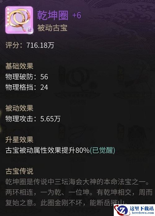 乾坤圈和风火轮一样具有物理破防、格挡效果,但不同的是被动效果不是物理防御而是物理攻击加成。