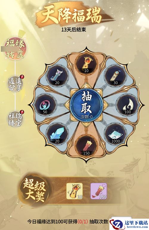 天降福瑞活动也将在新大区的新位面限时开放,届时将有福缘转盘、逍遥分享、祥瑞臻宝三重福利助玩家们轻松修炼,参与活动有机会获得探宝十连、上古玉简、丰厚机缘及超高收益礼包。
