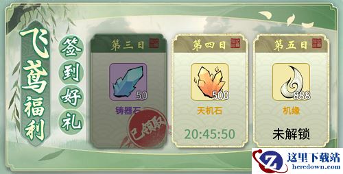 即日起至4月5日,每日登录并签到,即可领取铸器石、天机石等好礼。连续签到5天,即可领取888机缘。