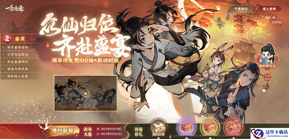 吉时将至,请众仙归位,齐赴周年盛宴!《一念逍遥》二周年庆典将在1月21日正式开启,届时登录游戏可参加春节活动,领取周年福利,还有全新大区、《斗罗大陆》联动等内容请各位仙友体验!现在前往《一念逍遥》官网还能进行超前预约,领取预约奖励!