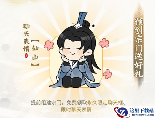 预创角成功后,符合条件者可预先创建宗门,锁下心仪宗门名号,其他玩家可以预约已预创的宗门,待30日新大区开放,则可领取永久聊天框“宗门之路”和限时仙山表情包奖励!