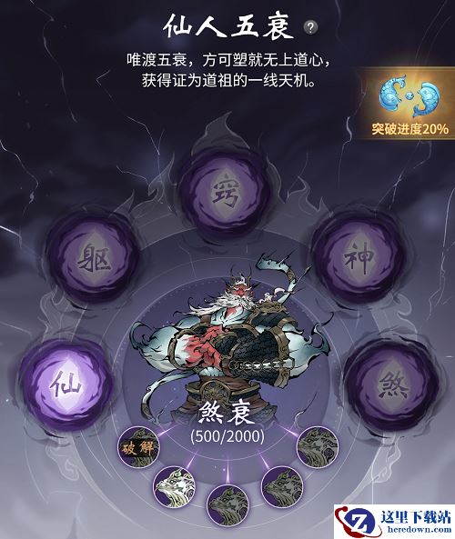 然而天道无常,对大道的渴求之下,内心异象丛生,魔影笼罩,“仙人五衰”便孕育而出。仙衰、躯衰、窍衰、神衰和煞衰为“大五衰”,每一大衰之内各有五个阶段,唤为“小五衰”,唯有参与心魔试炼,化解小衰,突破大衰,方可获得证为道祖的一线天机。若能守心静修,逐个击破,自得大道广阔,修为进益。