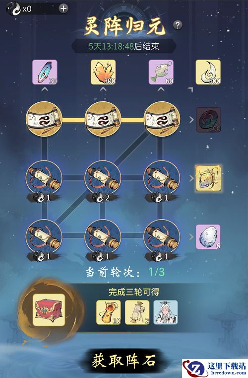 8月26日8-9月5日,修复灵阵,万象归元——“灵阵归元”限时福利活动开启。活动期间完成指定任务,即可获得活动道具“罗天阵石”,消耗阵石修复灵阵阵眼可立即获得修复奖励,每修复完成一条直线阵眼,可领取更高档次奖励。