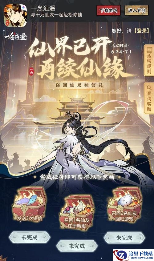 身边众多仙友忙着飞升创世,此情景虽热闹非凡,却让小师妹回忆起了曾经的好友。当初约定一同踏入仙界,如今仙门终开却有不少人消失在人海。不如就趁着仙界开放,邀离去之人重回逍遥修真界,再续仙缘吧!参与召回活动,还可以领取奖励哦。