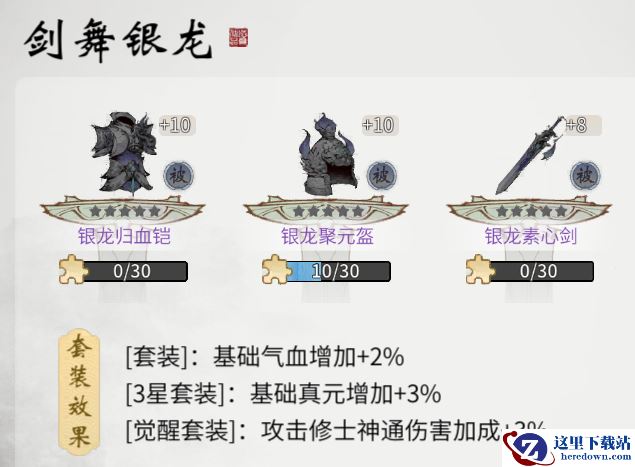 全新限定古宝套装·剑舞银龙现世!该古宝由真灵岛银龙取族中珍宝所铸,包括银龙归血铠、银龙聚元盔、银龙素心剑,可聚气化元、抵抗神兵,更可助修士进攻。通过《一念逍遥》风雪载梅玩法,每日开启宝箱,可免费获得古宝·银龙归血铠;集齐并升星古宝套装,能提升气血真元及神通伤害加成,获得大量属性加持!