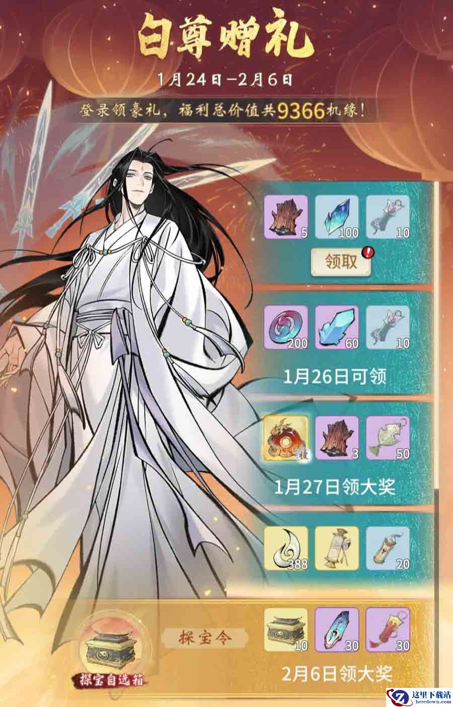 活动今日开启,持续至2月6日,活动期间指定日期登录,可领橙品古宝等馈赠。