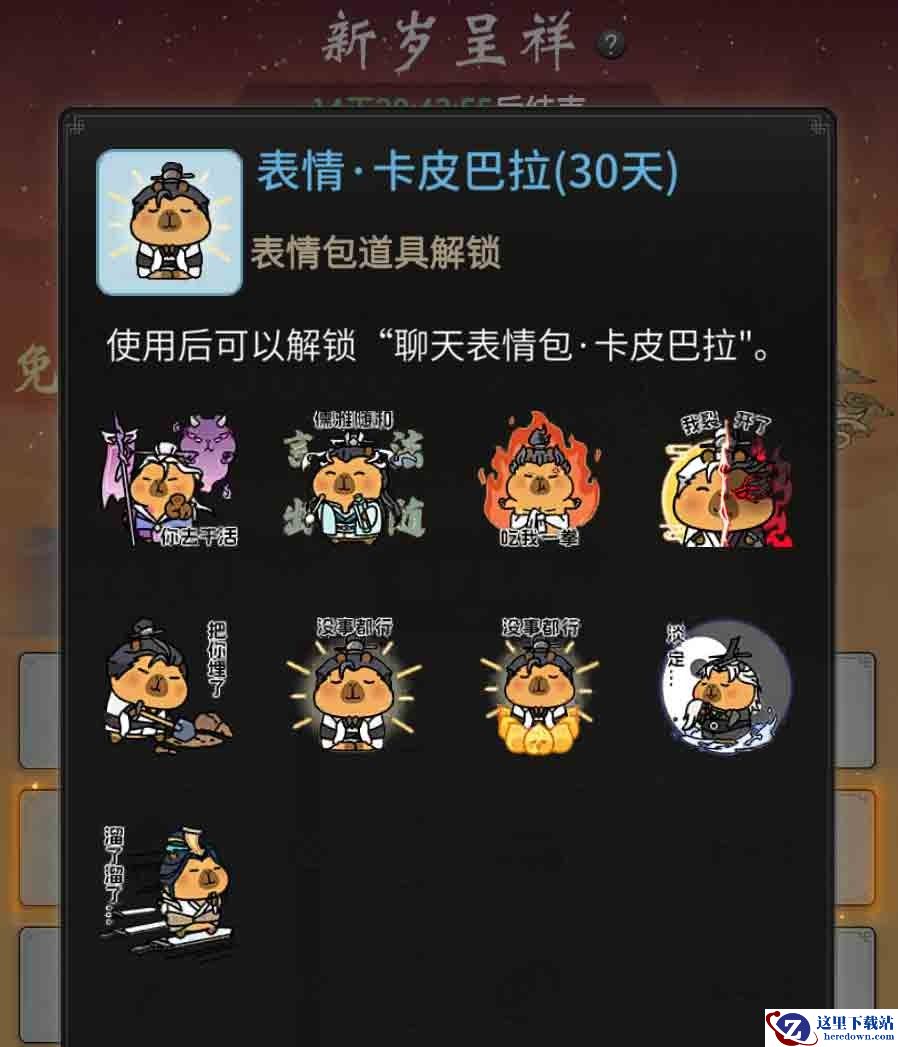 1月27日~2月12日期间登录,即可免费激活,每日完成任务,免费领取3600机缘与卡皮巴拉小黄豚限定表情包。