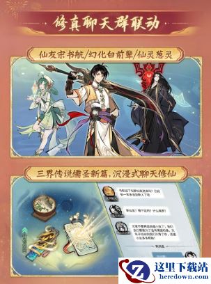修聊联动2025年1月17日上线,和宋书航、白尊者、葱娘一起共庆四周年!三界传说联动儒圣新篇,体验新剧情即可免费获取紫品联动时装、道具,橙品古宝等福利,还有更多外观、表情包即将上线,欢迎加入修仙一号群,一起欢笑修仙!
