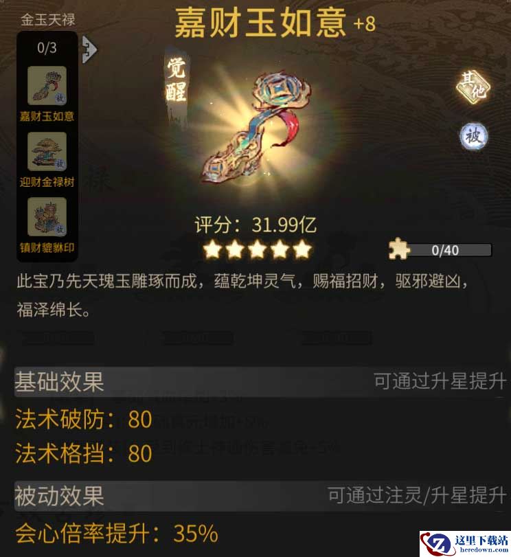 护道佑主,招财赐福,参与签到、拼图等活动,可获取古宝套装“金玉天禄”。集齐并升星古宝套装,能提升修士气血、真元等属性,修行之路更加顺畅。