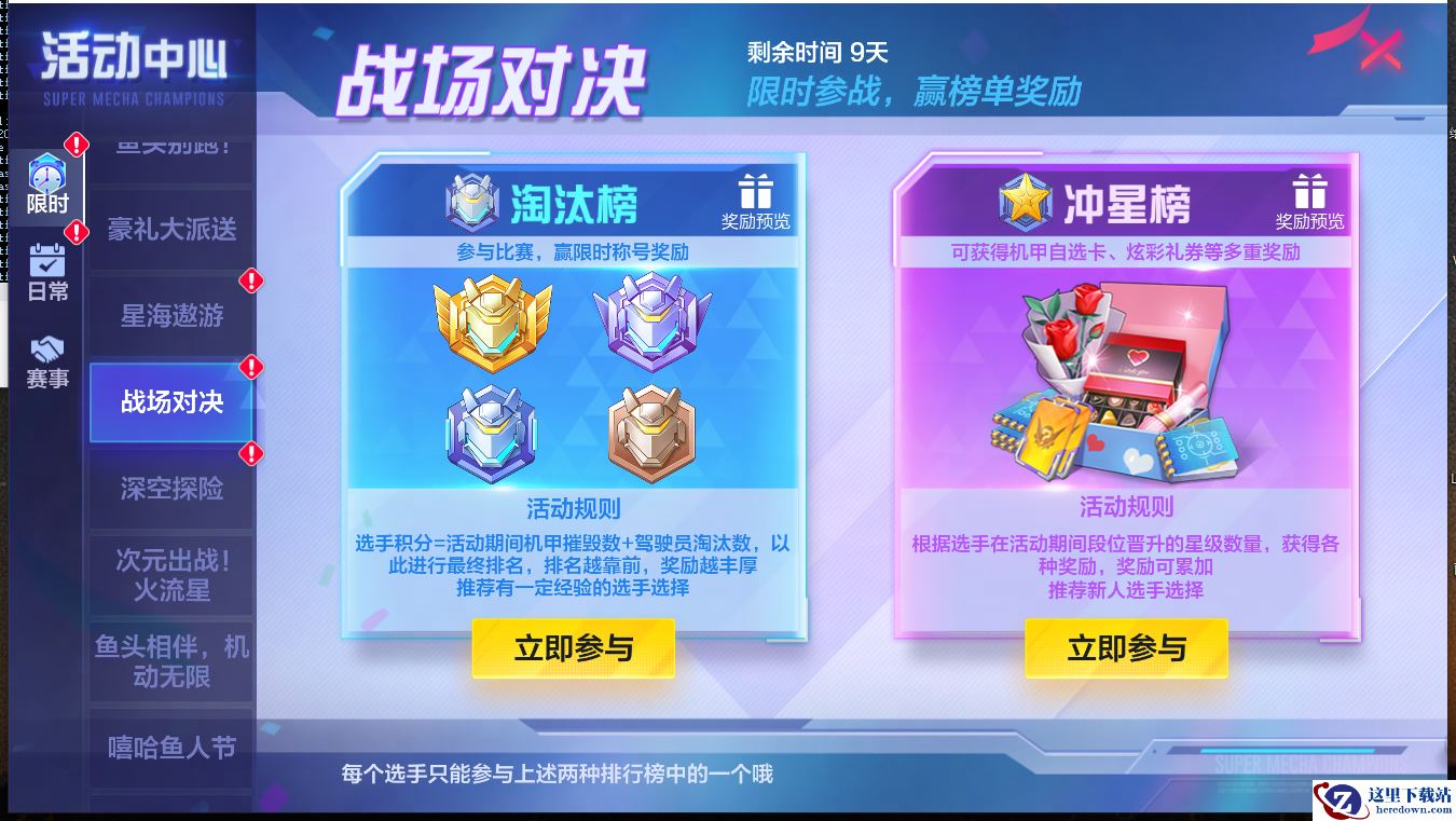 活动开启后,选手可在淘汰榜和冲星榜中选择一个榜单参与: