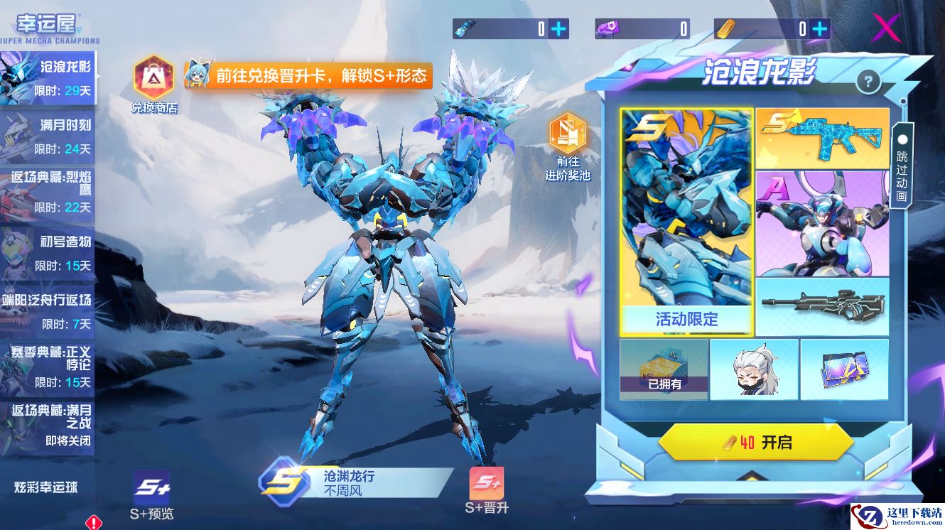 在获得不周风S级外观 “沧渊龙行”后,更可开启进阶奖池,获取外观晋升卡,解锁专属S+形态。