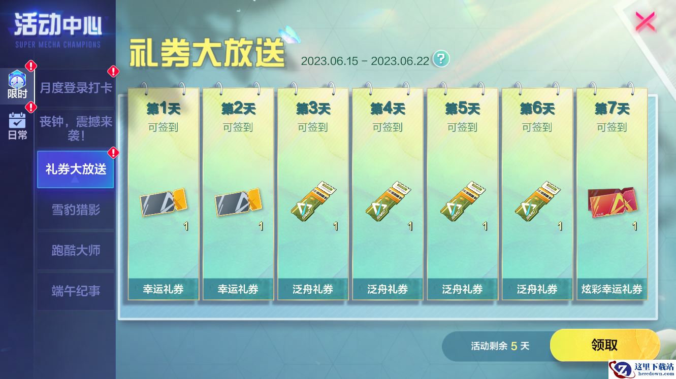 6月15日至6月22日期间登录,每日登录可领取好礼,更有炫彩幸运礼券等你来领!