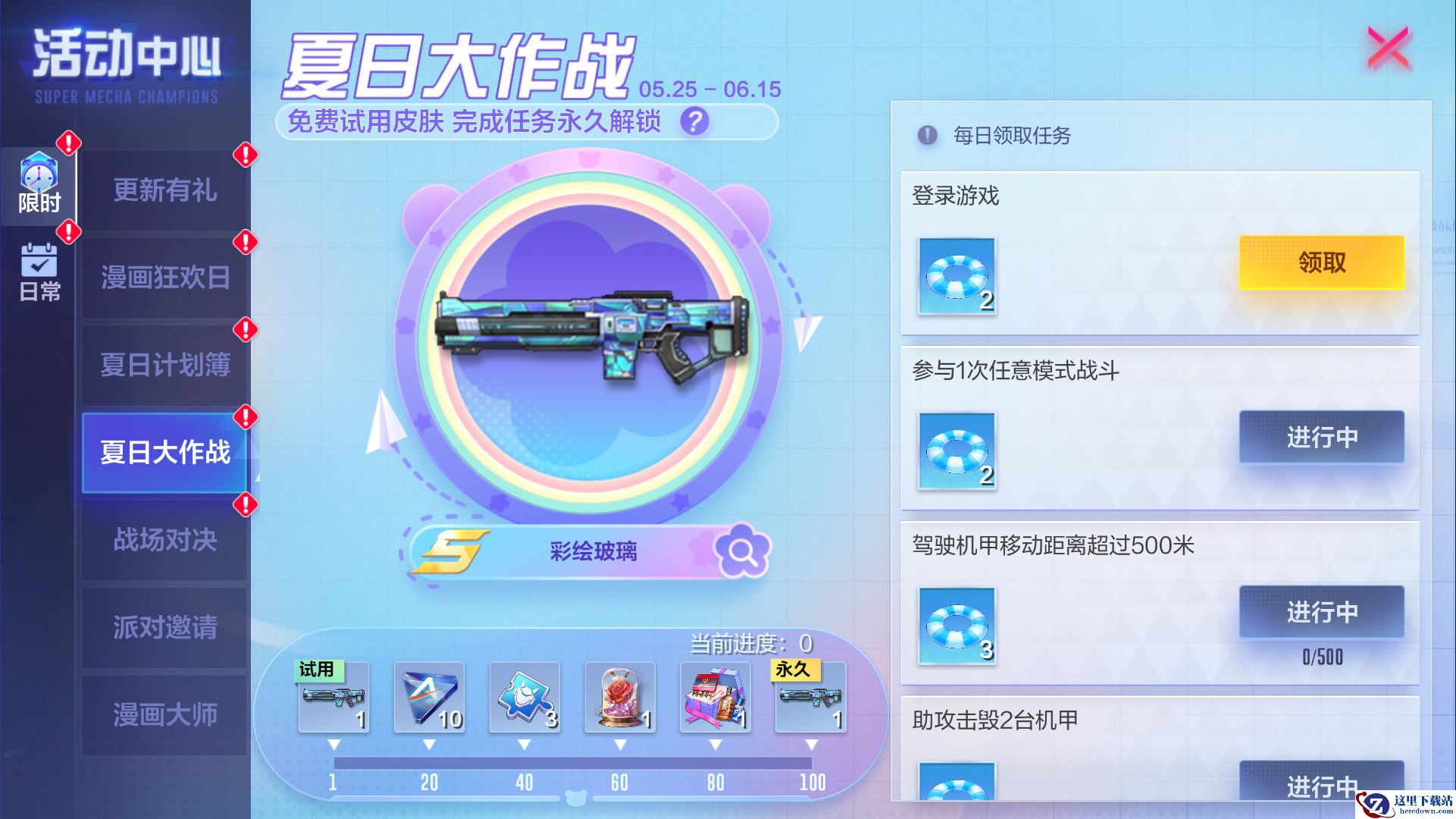 活动期间参与对局完成对应任务,可以领取“仲裁者机枪-彩绘玻璃”等丰厚奖励!