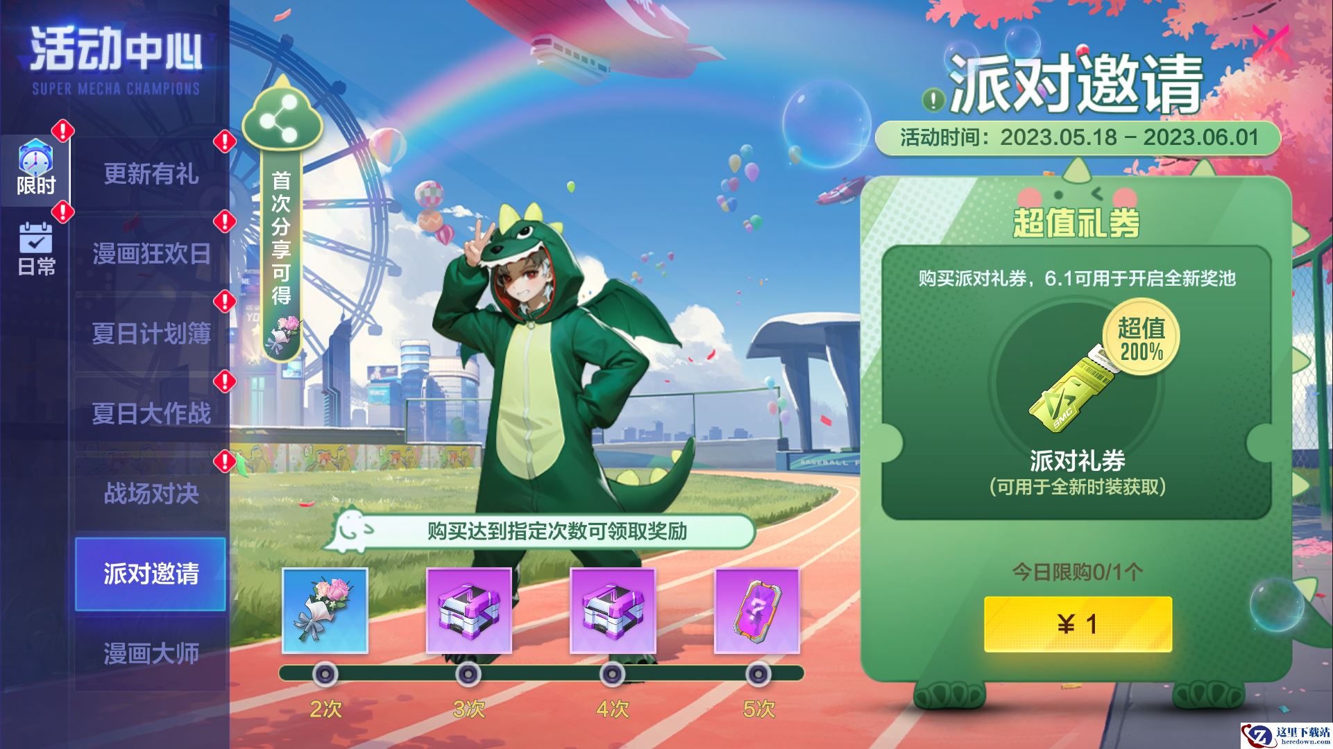 希里斯全新外观将于6.1上线,预热活动火热开启,提前购买派对礼券即享超值优惠,更有专属礼物等你来拿!