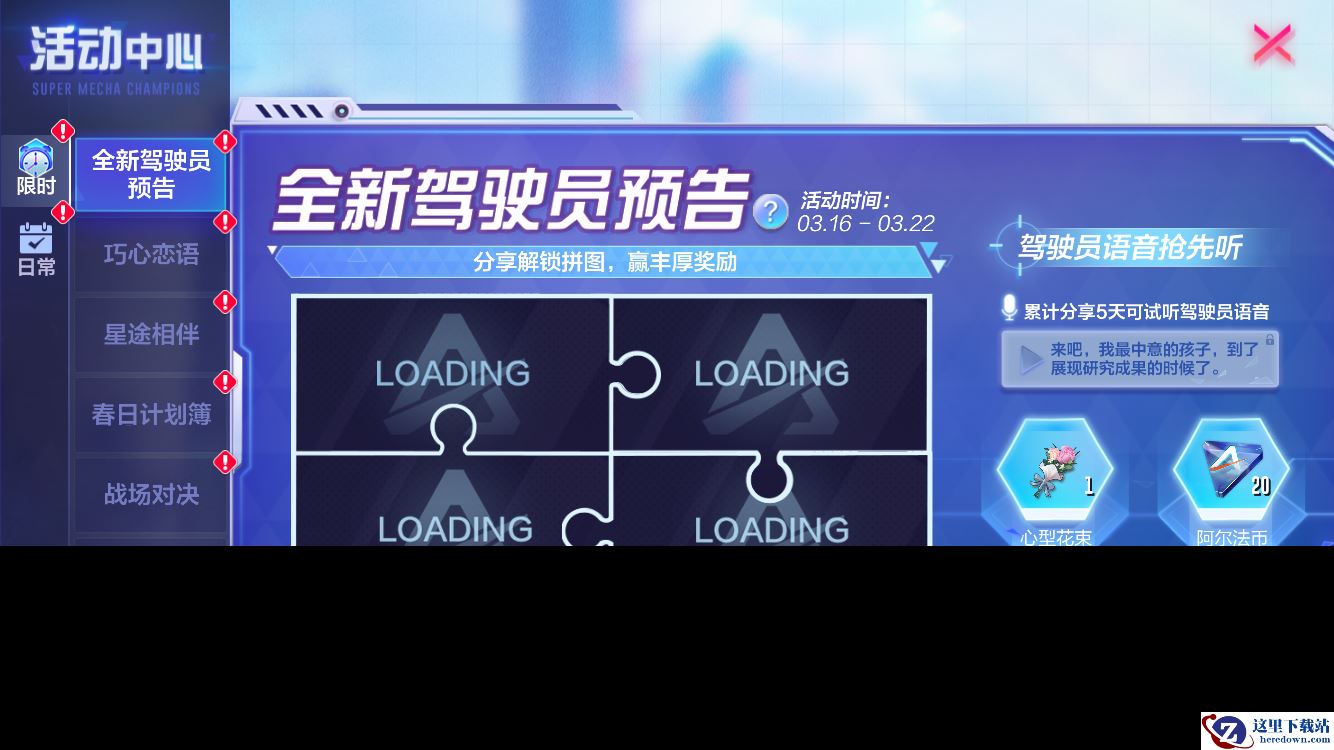 全新驾驶员即将上线,分享解锁拼图领取丰厚奖励,累计分享5天即可试听驾驶员语音