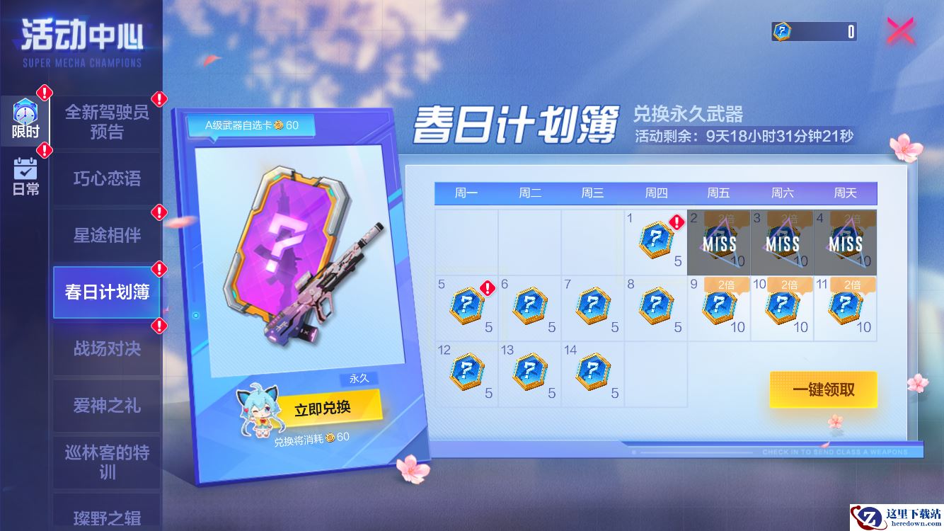 3月16日至3月30日,活动期间登录领取积分,即可获得A级武器皮肤自选卡!