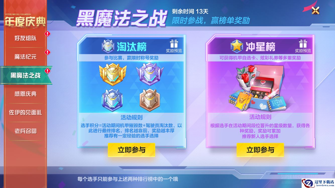 12.15-12.29期间,选择参加活动中的淘汰榜或冲星榜,完成对应榜单的目标领取奖励。选手只能选择两个榜单其中的一个榜单参与。