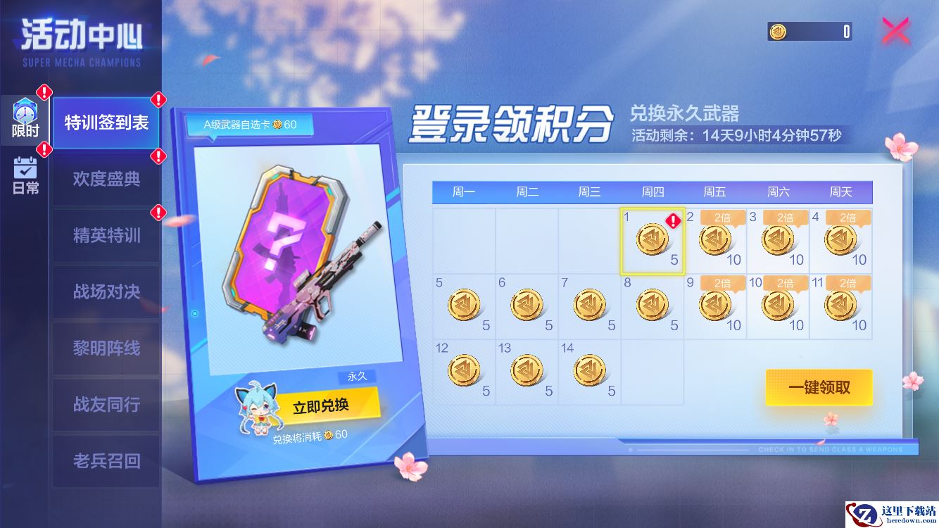 10月13日至10月27日,活动期间登录领取积分,即可获得A级武器皮肤自选卡!