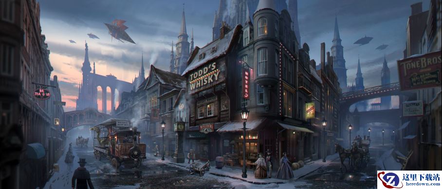 浮空岛屿通过巨大的螺旋桨装置悬浮于万丈高空。在这旧日的工业之地,蒸汽航线的始发之站、初代机甲的诞生之源,你能看到贵族与平民,繁华与荒芜,华灯敞亮与阴沟晦暗。从富丽堂皇的熙攘都市、安稳祥和的便利生活区,到“淘金浪潮”褪去后被人逐渐遗忘的废弃矿厂……九大分区,特点各异,随处可见的“蒸汽朋克”元素,到处都是满满的细节。