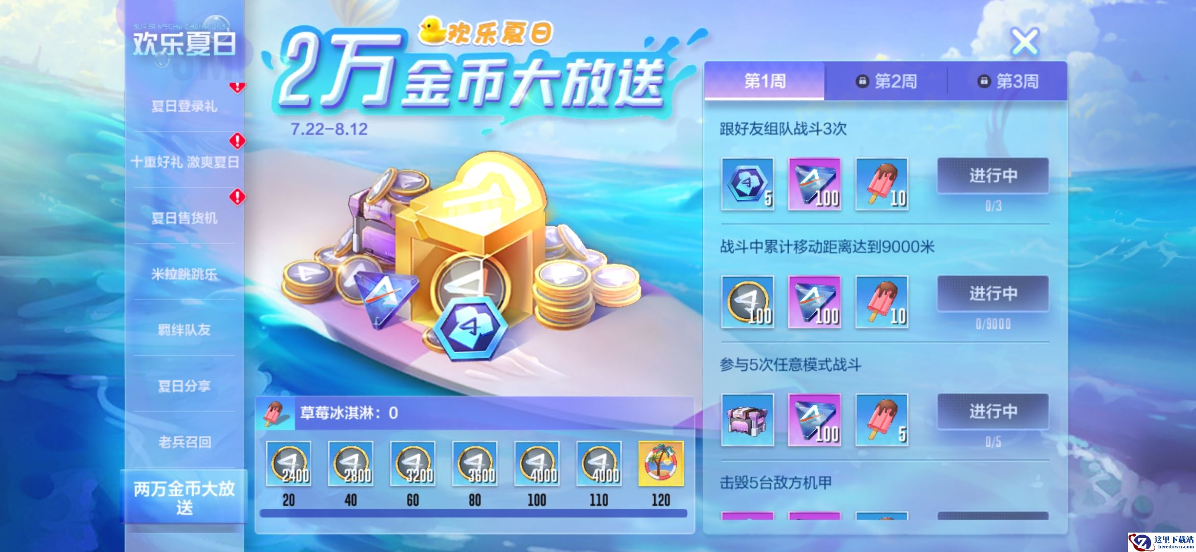 狂欢夏日福利加码,两万金币免费派送