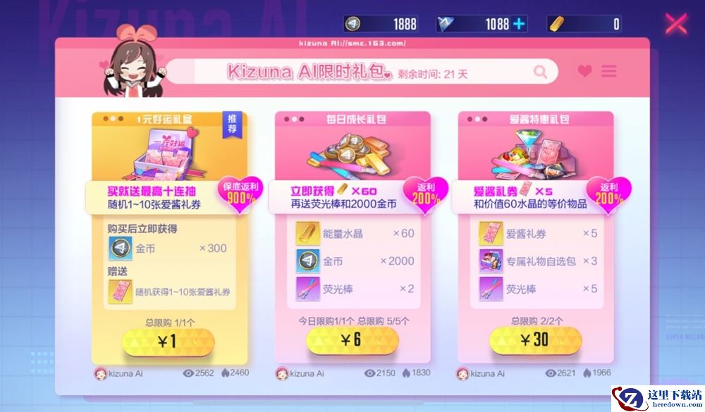 完成每日任务收集荧光棒,即可兑换“晃悠悠头饰”、“头像框·KizunaAI”、“爱酱礼券”等限定奖励;