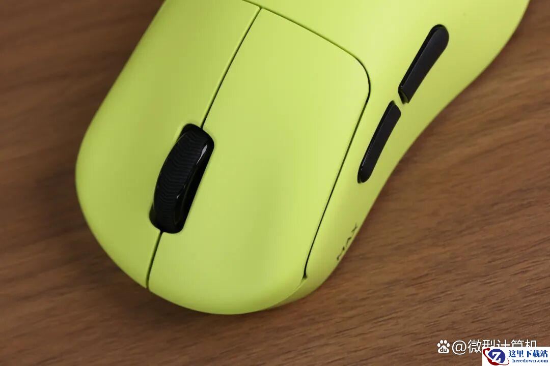 按键设计同样有亮点——左右键增设手指槽,中部采用下凹造型,无论是手指放置还是点按操作,都能快速找准适配位置,相较于前代平滑按键的使用体验更胜一筹。作为专为小手用户打造的产品,其按键布局经过合理精简,取消中间CPI切换键,保留左右键、滚轮及两枚左侧常用键,与紧凑机身相得益彰,操作逻辑清晰直观。