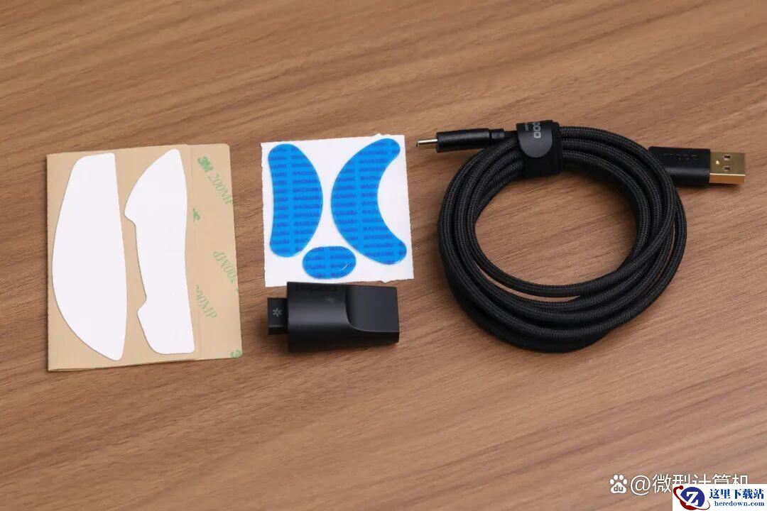 在配件配备方面,雷柏VT3s系列标配8K屏蔽网抗干扰数据线——其长度达到1.8米,具备屏蔽层,更适应于高速数据传输,确保了信息传递的稳定性。此外,产品还配备了脚贴、防滑贴以及新款转换器等多样化配件,为用户提供了丰富的DIY空间和使用选择,从而全面提升了用户的体验感。