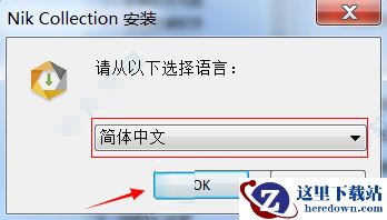 1、在本站下载好安装包,双击运行“nikcollection-full-1.2.11.exe”程序,软件开始自解压操作,解压完成后弹出语言选择框,默认为“简体中文”,点击“ok”开始安装;