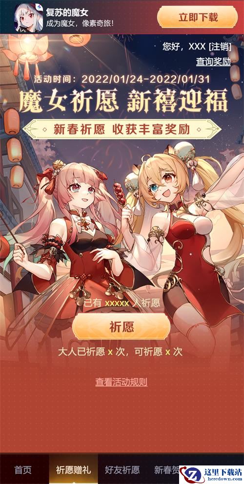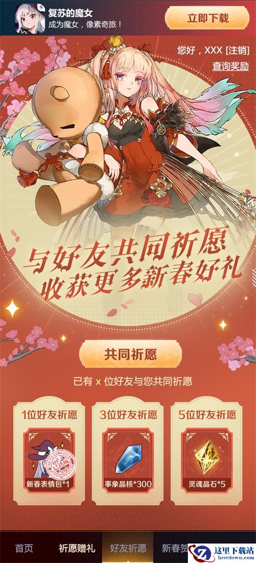 春节将至,《复苏的魔女》【魔女祈愿,新禧迎福】H5活动1月24日上线,超多福利大放送,除了游戏道具奖励外,还有魔女公仔、限定表情包和限定家具哦,一起来看看都有什么内容吧!