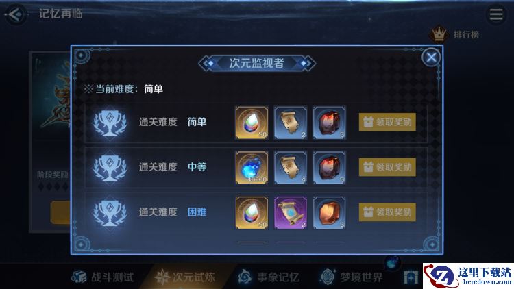 记忆再临:记忆再临在击败主线大章节Boss后会解锁,通关不同难度的Boss可获得不同奖励。打败Boss的速度越快,奖励也会越丰厚哦。