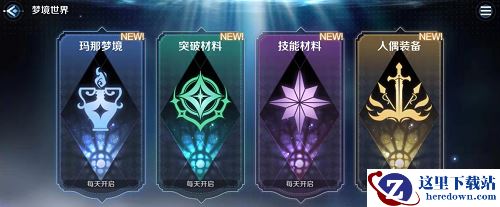 在《复苏的魔女》中,梦境世界是各位魔女大人收集各类升级材料的不二选择。梦境世界分为「玛那梦境」、「突破材料」、「技能材料」、「人偶装备」四个副本,副本每天开启,魔女大人进入不同的副本赢得战斗会获得各种不同的材料。