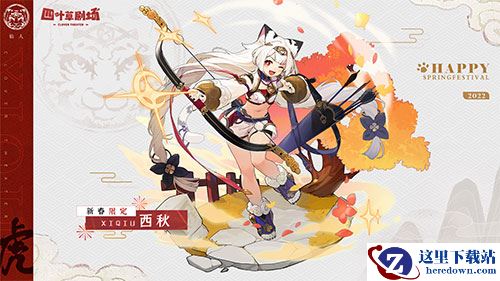 白虎作为中国古代神话中天之四灵之一,又逢壬寅年,新春限定SSR演员——西秋即将登场!神兽白虎为西方战神,五行主金,象征四季中的“秋”,所以我们将这位角色命名为“西秋”,并让她出生于东方大陆,添加了在白虎堂学习、修炼,并成为了仙人的过去,更多关于她的故事等你解锁!